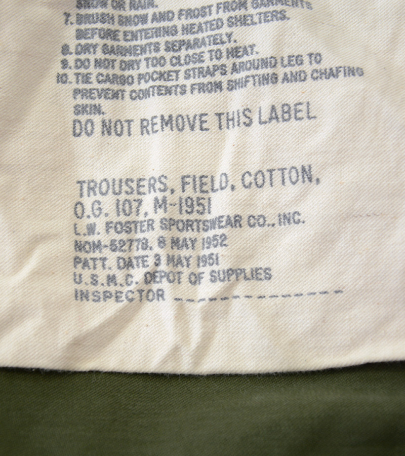 ●52’s USMC 海兵隊仕様 M-51 フィールドパンツ 表記(M-R)