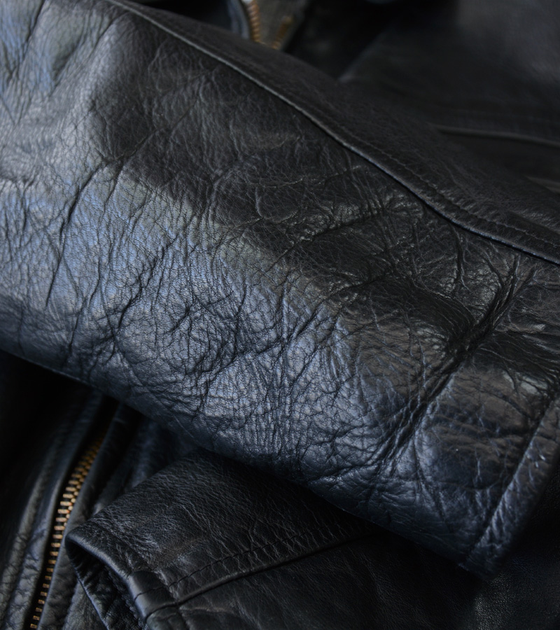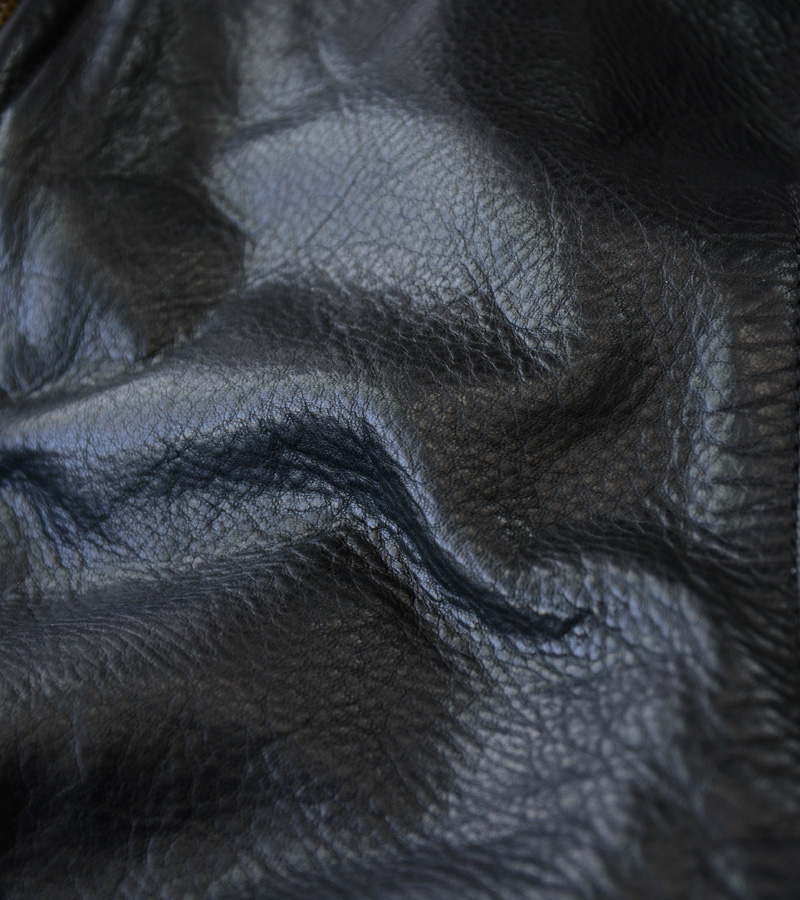 シボの強い厚手のレザーは、