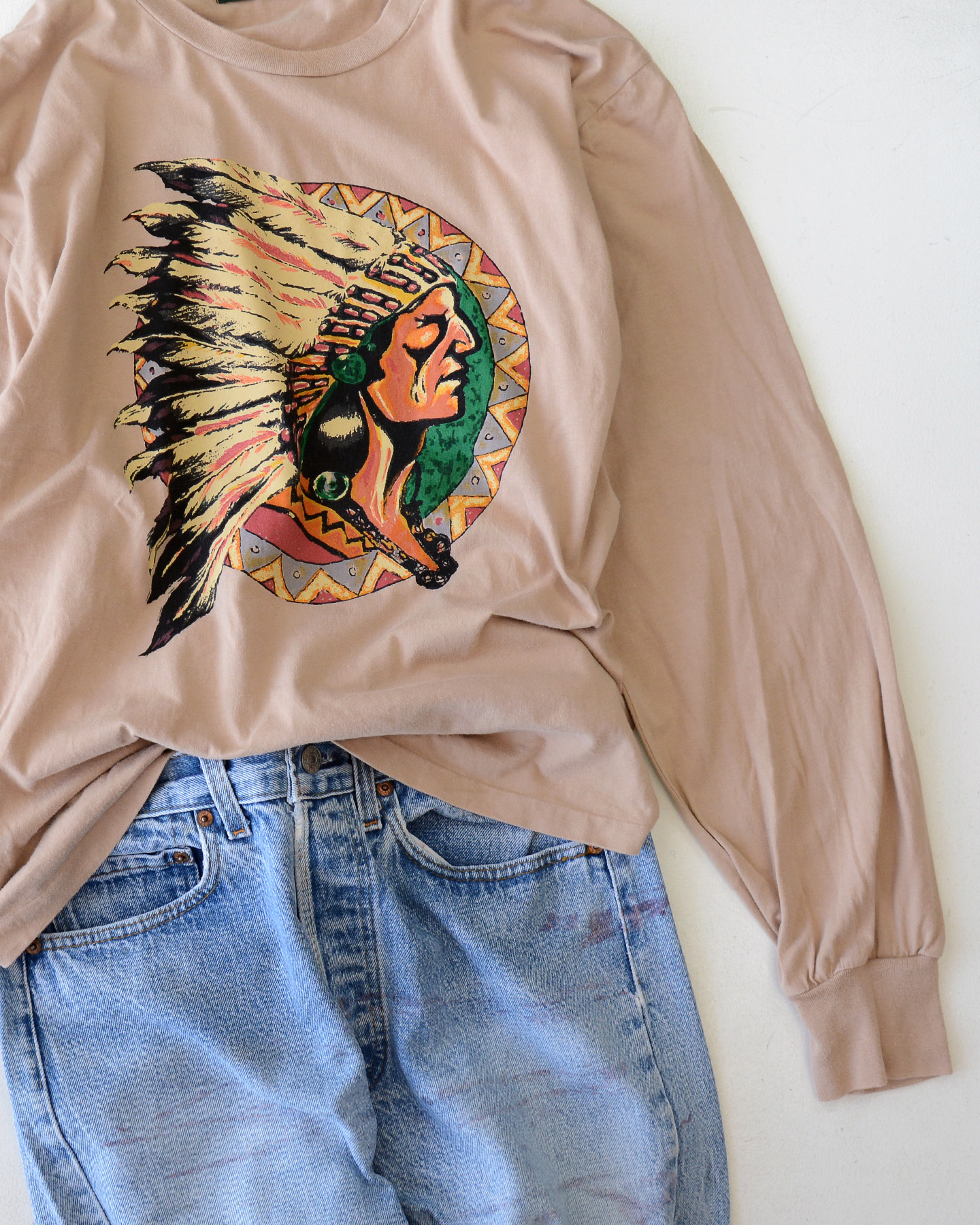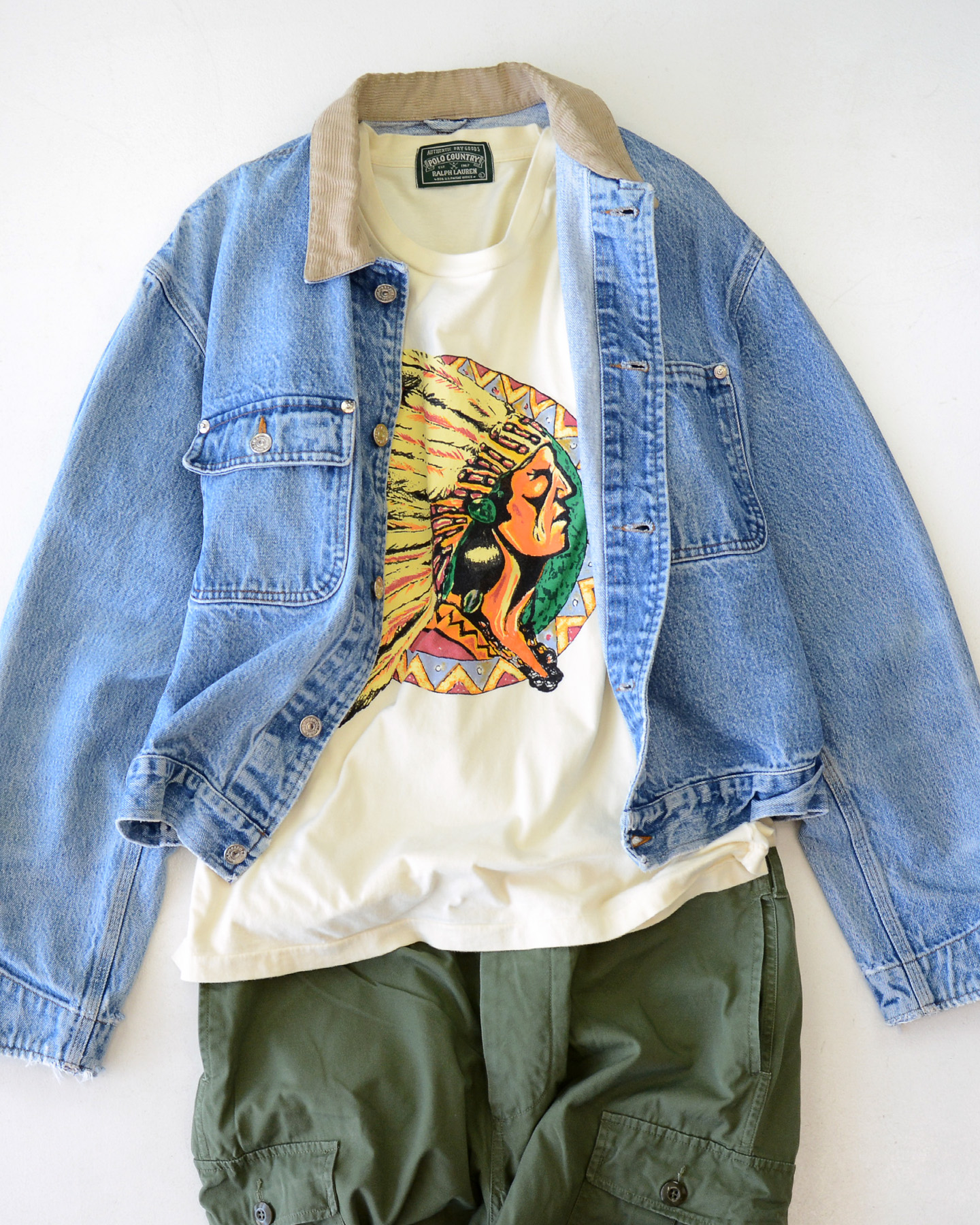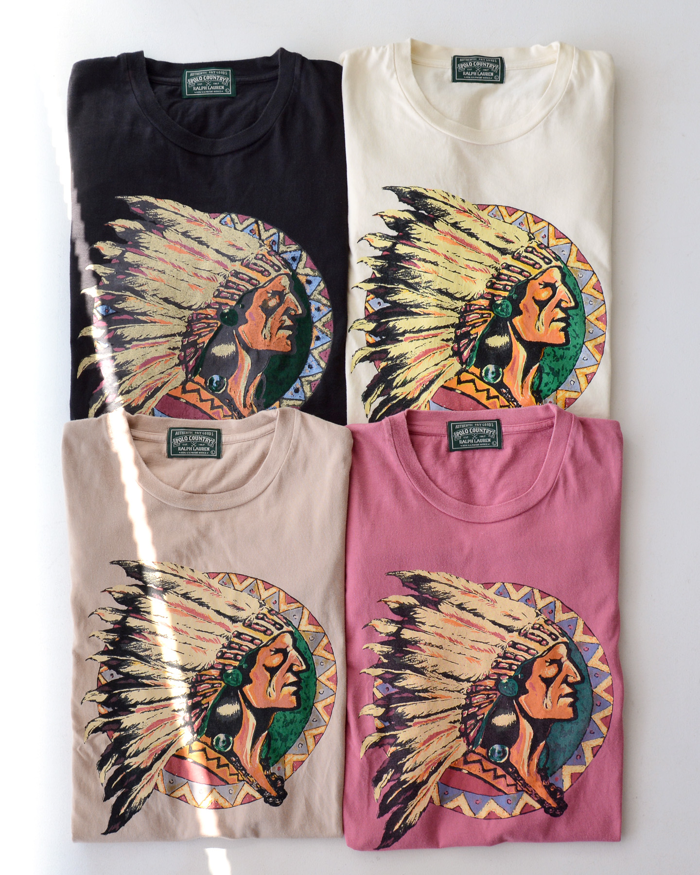 90’s ポロカントリー・ラルフローレン インディアンヘッド ロンT ナチュラル 表記(L)