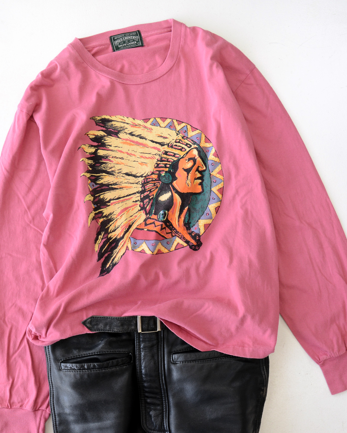 90’s ポロカントリー・ラルフローレン インディアンヘッド ロンT オールドローズ 表記(L)