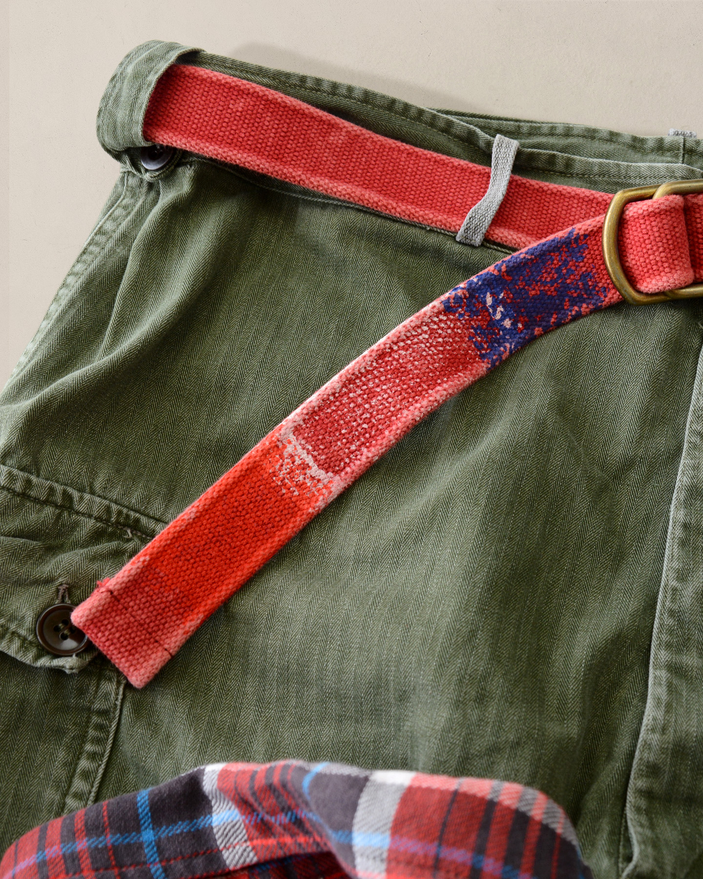 ポケットのループにオレンジのペンキが飛んでいる所が